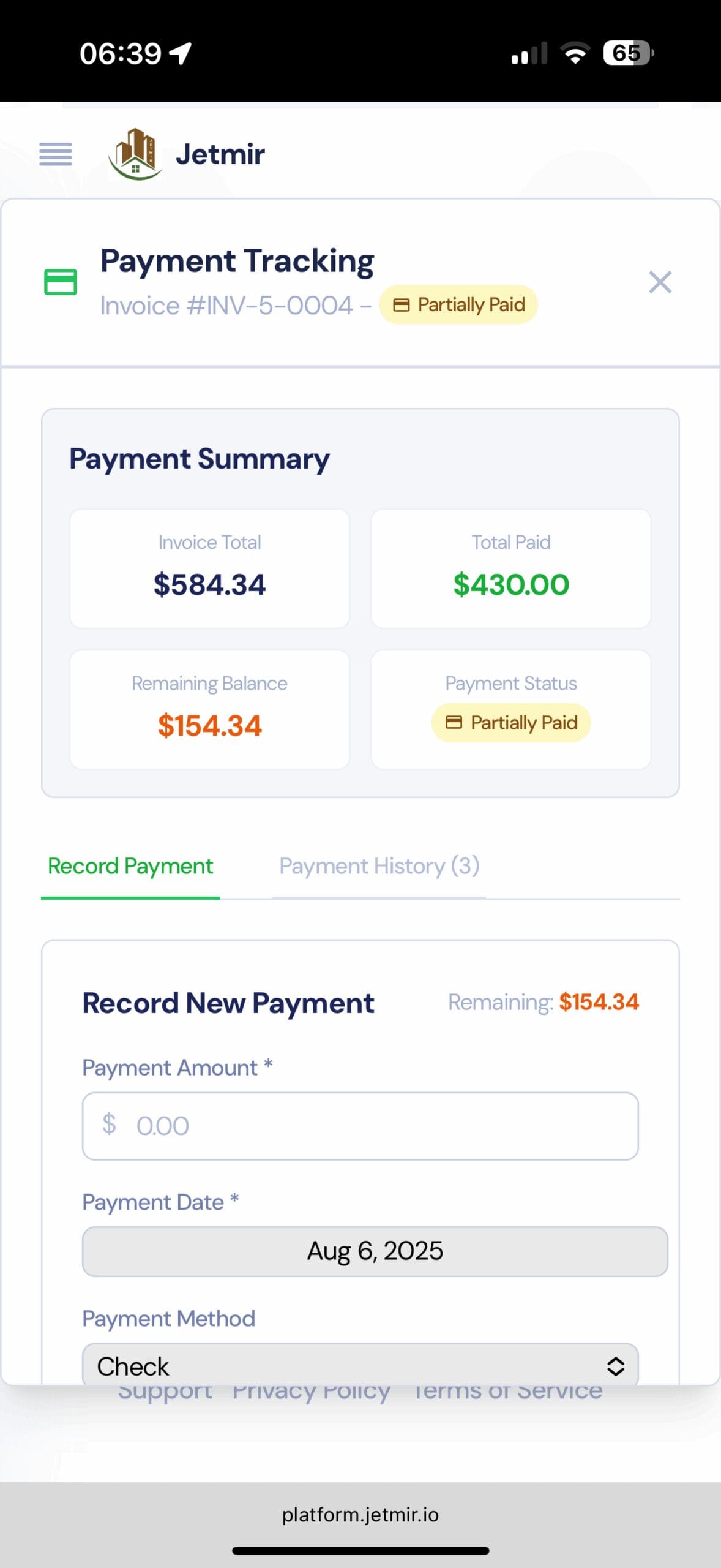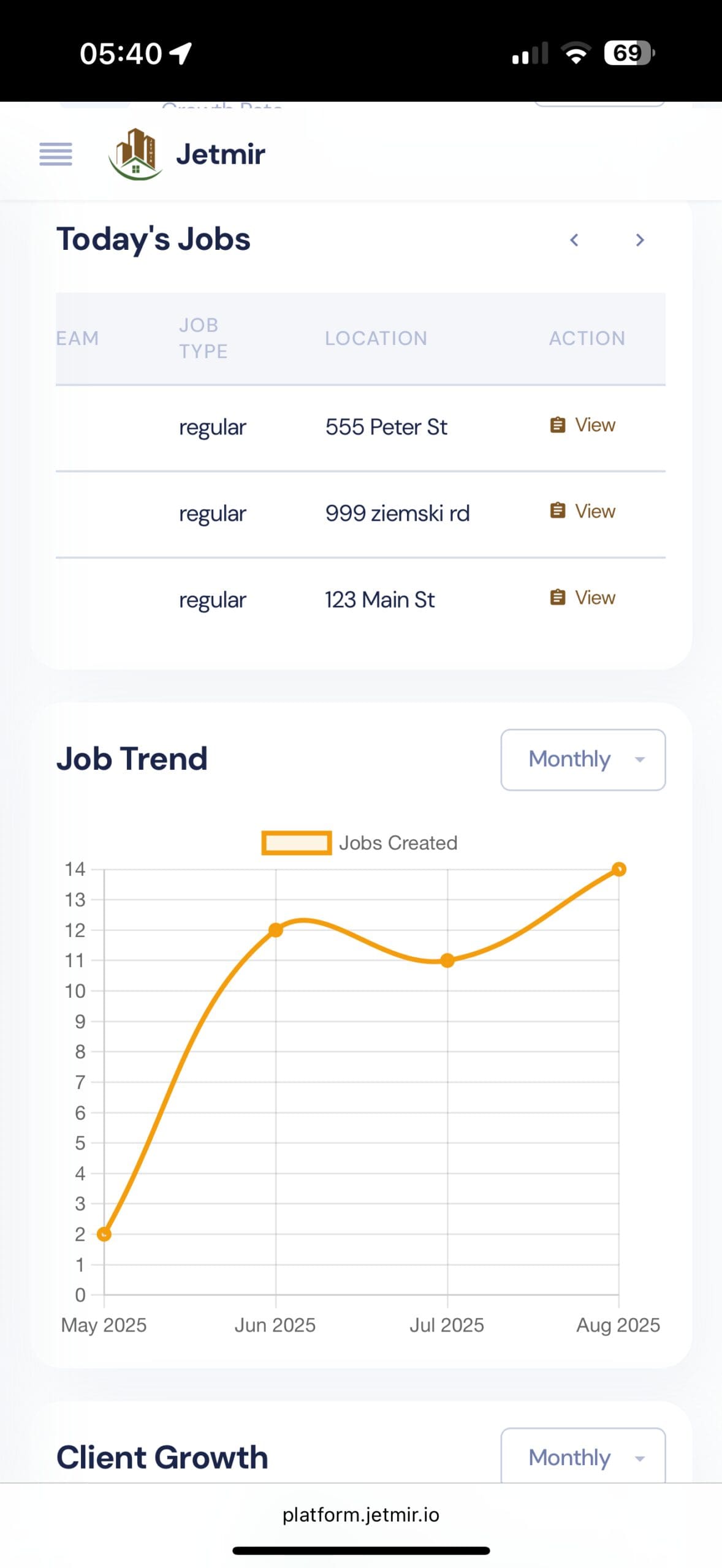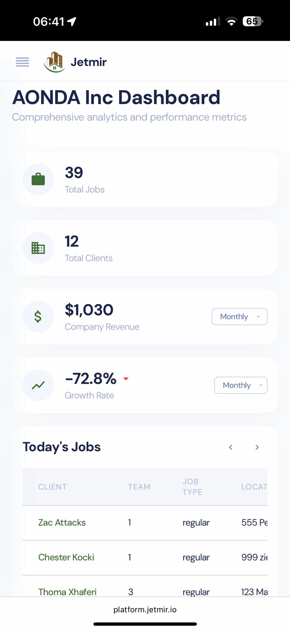 We have several improvements in progress. One of them is to build a vehicle tracking system in order to also manage effectively your trucks and your mobile team. We are also working on integrating with several third party providers such as Quickbooks in order to facilitate accounting practices. We're also working on better reporting and exporting capabilities within Jetmir. If you have suggestions for us to consider, we look forward to hear from you via the "Feedback" menu item once you sign-in to your Jetmir account.