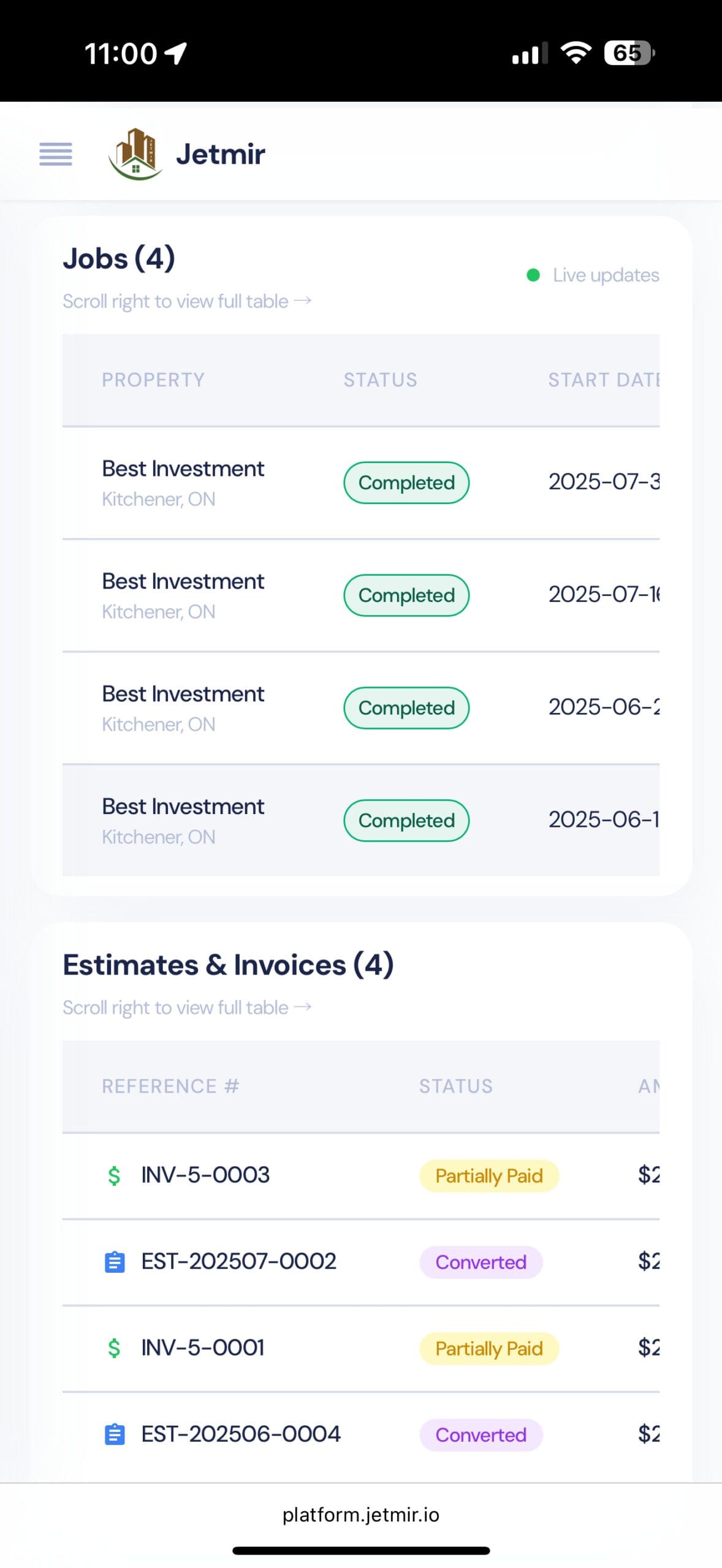 When working on our research, we found that there is an increasing level of dissatisfaction with other solutions due to a high price tag, feature-gating (if you want more services you pay more) and complexity of usage. Jetmir is one of the lowest priced field service management platforms for the skilled trades, offering all features from the get-go and without hidden fees. We've also taken a lot of time to create the easiest possible user experience so you can focus on your trade instead of learning how to use Jetmir.